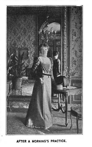 In large cities a girl generally goes to her pupils instead of having her pupils come to her. Many teachers prefer to do this, as studio rents, especially to musicians, are high. Also, one may charge for a lesson when one goes to the house, whether the lesson is given or not, whereas parents rarely take it pleasantly if one charges for the lesson after receiving word to the effect that “daughter has a cold and cannot go out to-day.” Private pupils are an uncertain quantity and studio rents come due inexorably once a month. Nevertheless, a good many young women prefer to pay from $30 to $60 [in modern currency, approximately $680 to $1360] a month for a studio rather than to spend the time and strength going to pupils’ houses.