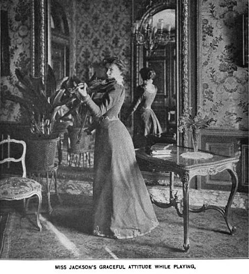 “It was a great blow,” remarked Miss Jackson. “Child as I was, I was suddenly confronted by poverty and the utter impossibility of continuing my studies. I knew I had the power to succeed, but how continue to pay for lessons and teachers? Mother knew that the position was desperate. At any price I must be sent to Europe to finish my education. We then devised the plan of giving little concerts, Brother Ernest as pianist and I as violinist, at the different seaside resorts during the summer, and with the proceeds sending me to Europe to study in the winter.”