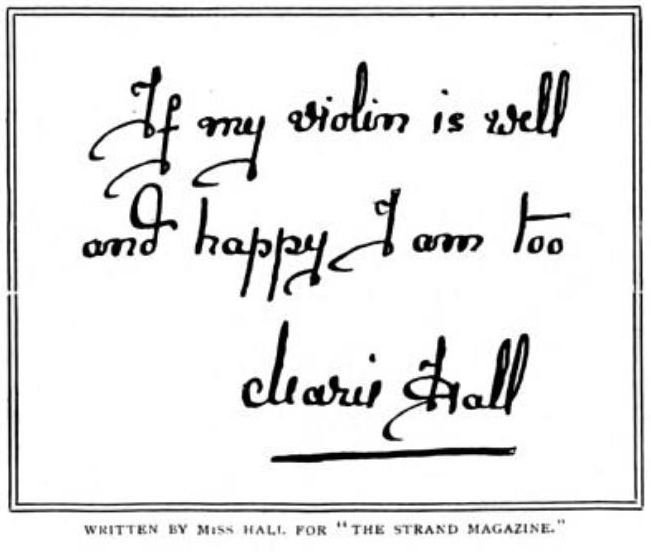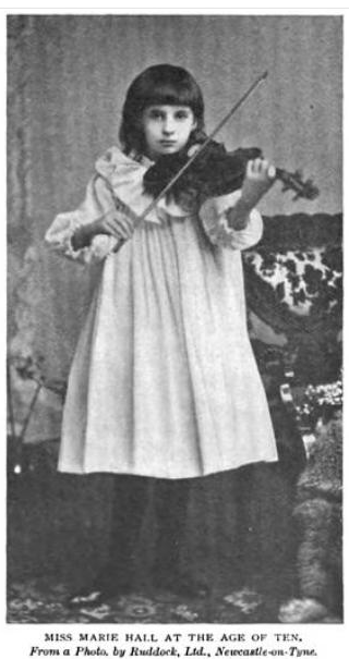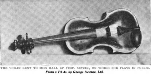 “After I had been learning the violin for a year I made my first appearance on the concert platform,” said Miss Hall. “I was then about nine and a half. After the concert was over I got several offers of engagements at music-halls.”