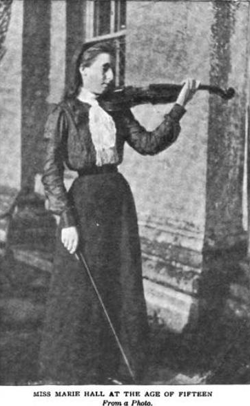 It is this “always, for ever and ever, plactising,” or, in other words, that infinite capacity for taking pains which is the sign-manual of genius, that has brought Miss Marie Hall, the girl violinist, to the front of her profession before she has reached her nineteenth birthday.