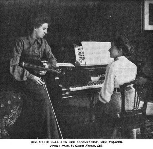 Miss Hall is fortunate in having as an accompanist a charming Bohemian lady, who was introduced to her by Sevcik himself. Miss Vojácek has travelled with, and accompanied, all the Sevcik girl pupils in England and on the Continent.
