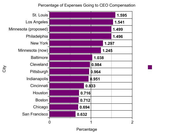 • It would also bring him more in line with other American non-profits whose budgets are between $25 million and $50 million. Here’s a Star Tribune article from October 2012: “For the big guns, nonprofits with budgets of $25 million to $50 million, the median CEO compensation was $243,000 at the top tier.”