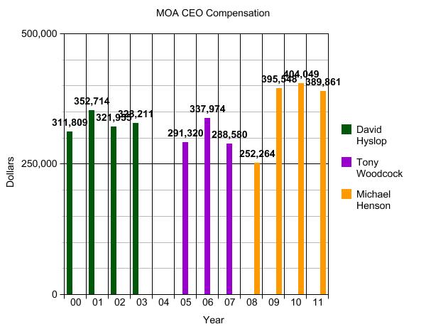 • Between 2006 and 2011, the compensation of the CEO of the MOA increased by 14%.