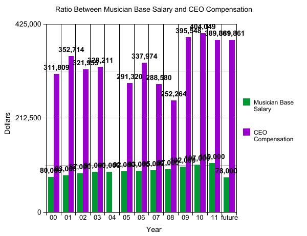 Put another way, in 2006, musician base salary was 27.5% of the CEO’s total compensation. The Henson proposal would bring this percentage down to 20%.
