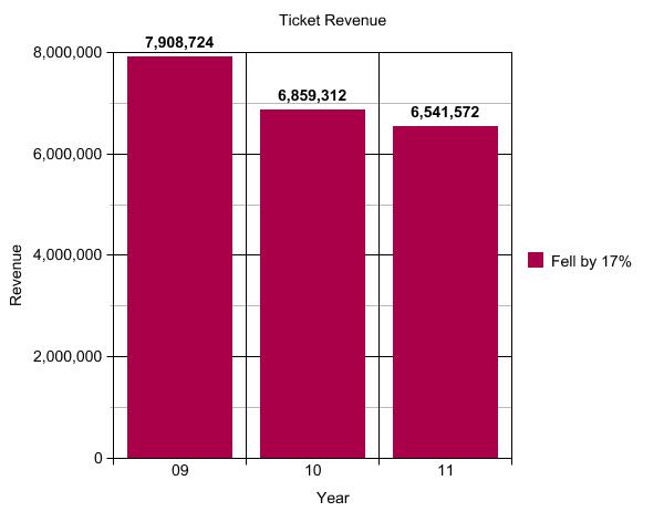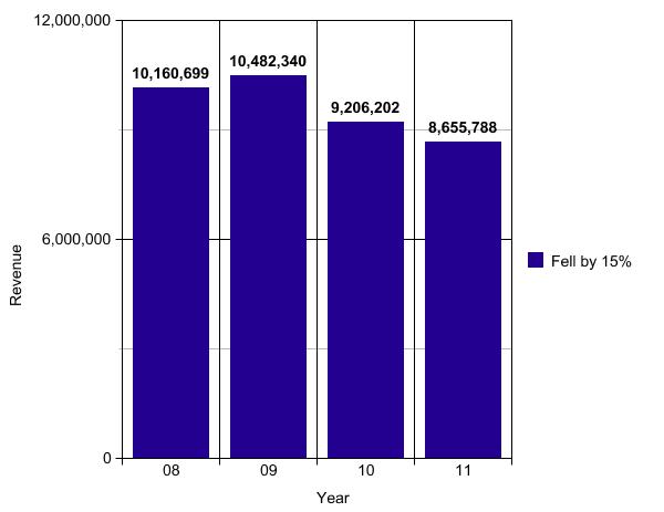 To sum, from 2008 to 2011, earned revenue fell by 15%. According to the MOA, this is “essentially flat.”