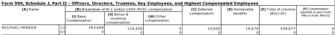 And here’s a disheartening reminder for you: this is not the last 990 with Henson’s name on it. Next year there will be another released covering the 2013-2014 fiscal year, and the payout to Michael Henson could be very high. Resignations like his can be expensive.