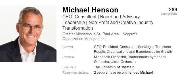 For all of us who would like to provide Michael with the level of Creative Industry Transformation he provided our beloved musicians, LinkedIn gives members the opportunity to provide Endorsements for other members. Since his target organizations would be those too stupid to use Google, I believe we should provide them with the proper endorsements for Michael, so that they might understand the Extinction Event level of transformation he is able to bring to an arts organization.